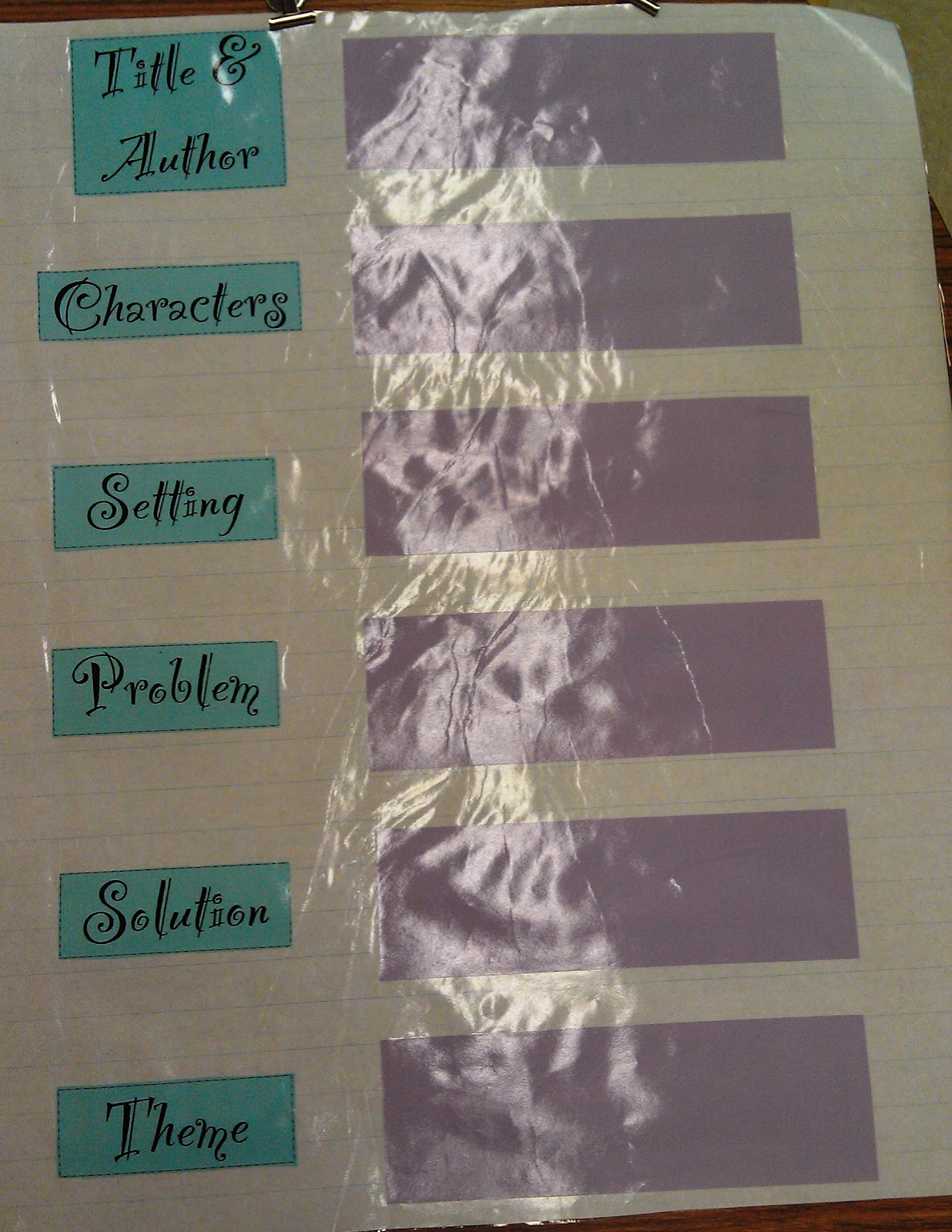Sorry for the glare! Lamination and fluorescent lights do not mix well! We went through each element for "Papa's New Pants" and added them to the chart using post-it notes. You have probably seen charts like this all over Pinterest! At this point, students referred back to the anchor chart in their reader's notebooks if they needed help.