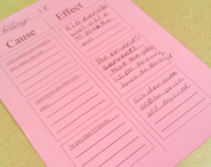 I also could not resist reviewing cause and effect with this story. Cinderella provides some great examples of cause and effect relationships. I created a graphic organizer that included three of the main events from the story. These events are found in most versions of Cinderella and could easily be used with a different version than the one I used in my lesson.
